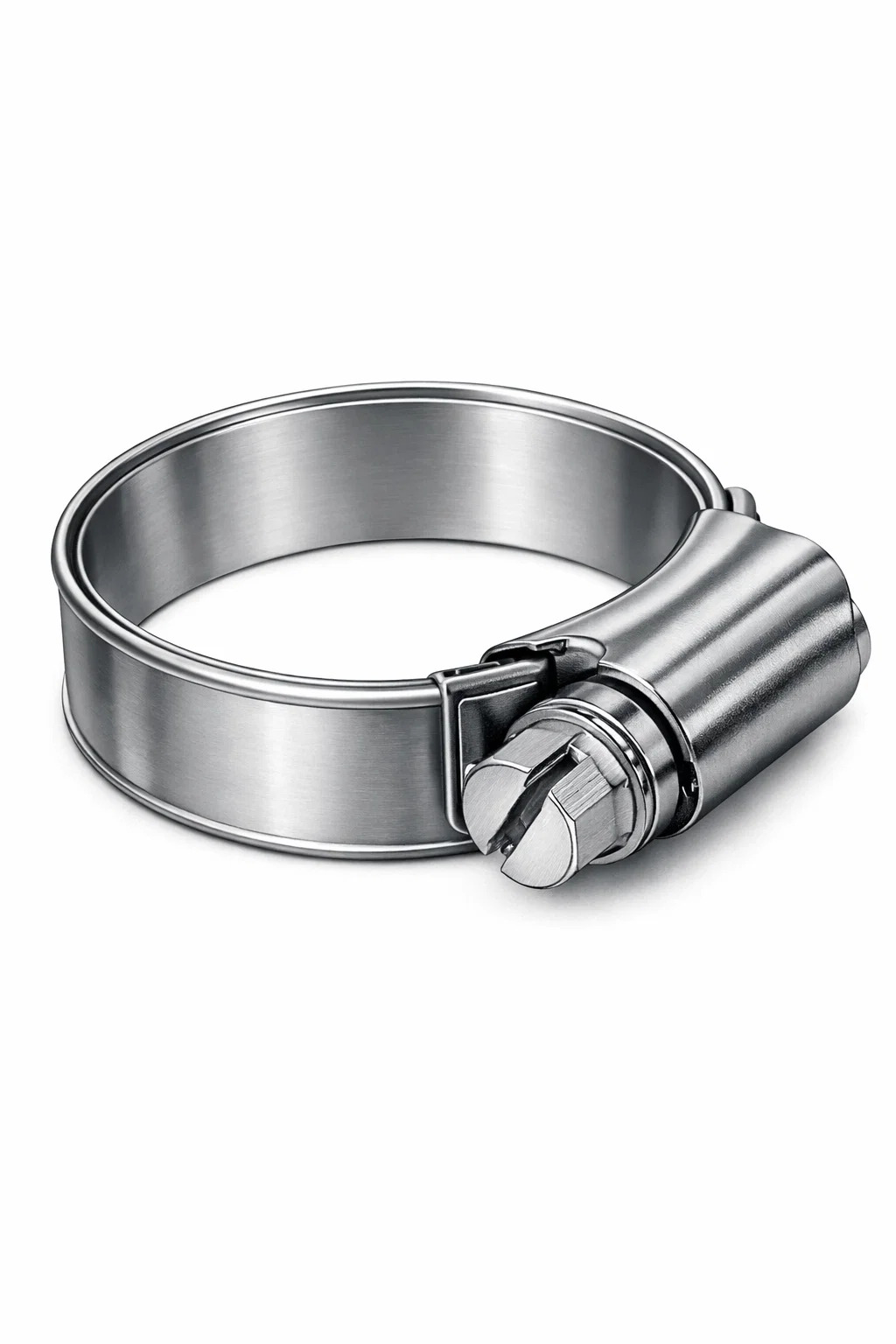 Шланговый хомут немецкого типа слегка раскатывает края стальной ленты наружу (расклешенные края), создавая закругленную форму. Это означает, что как бы сильно вы его ни затягивали, контактная поверхность будет гладкой и никогда не порежет шланг.